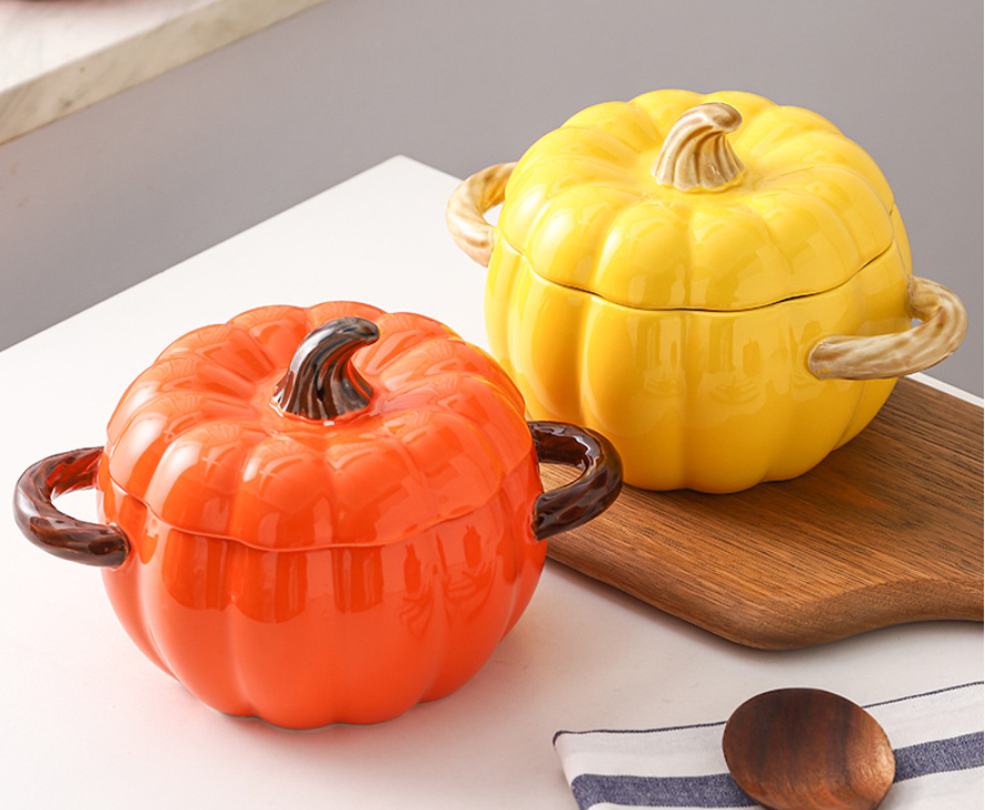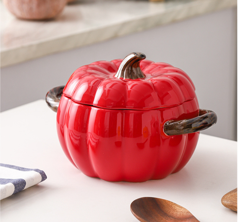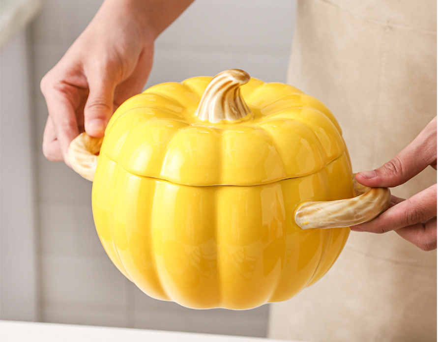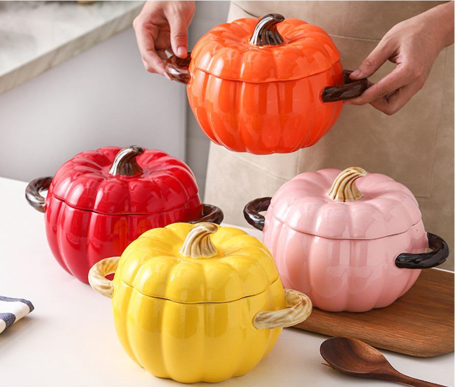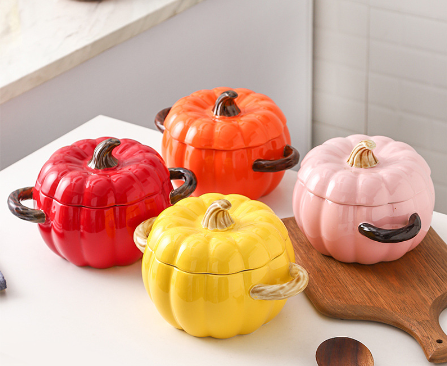 Crafted with precision, this soup pot boasts a captivating pumpkin shape that adds a touch of whimsy to your kitchen. Its smooth, porcelain surface invites a tactile connection, while the vivid and vibrant colors elevate your cooking space with a burst of energy.